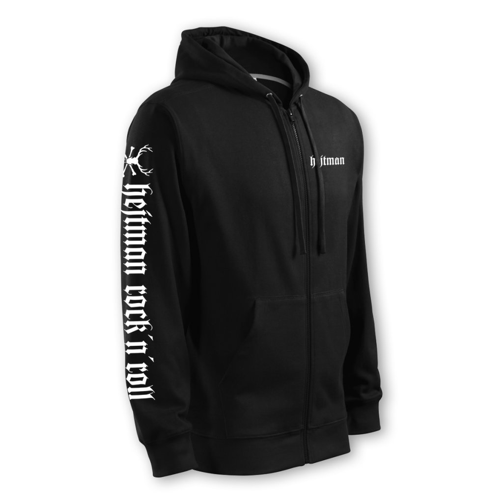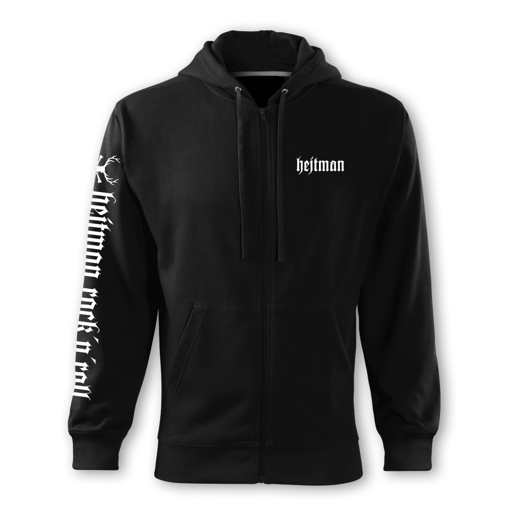 Černá zapínací mikina s kapucí a potiskem Hejtman.